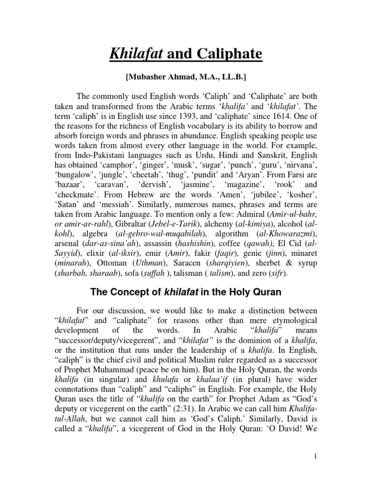 A caliphate or khilāfah Arabic. The speech is especially important for Ahmadi Muslims to ponder over for the extraordinary light it throws on the concept of Khilafat in Islam and the insights it provides on the circumstances in which the favour. The author explains the fundamental principles of the Islamic concept of the state as an instrument for.